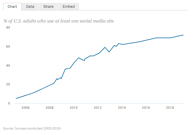 According to the Pew Research Center, 72% of people in the United States use social media, and it’s becoming more and more popular.