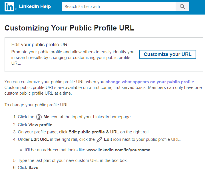 Customizing your profile URL helps you look more professional. Also, it will be easier to share and will not be dispersed among the thousands of profiles that contain simple numbers.