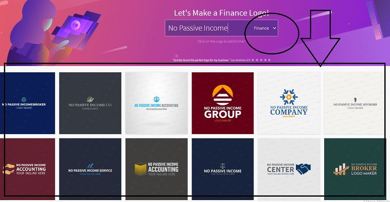Once you select a category, a number of examples of logos will appear on the page and all you have to do is choose your favorite one.