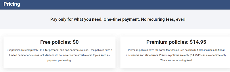 If you own a commercial site, you would need a custom-tailored privacy policy. You are going to pay only $14.95, one time payment, with no recurring fees unlike some of the privacy policy generators available online.
