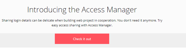Also, you may want to use the “access manager” feature, which lets you invite people to grant them access your Hostinger account. Choose this option if you have a person creating or managing your web hosting. When the access to your account is granted, a confirmation email is sent to the email address you have provided.