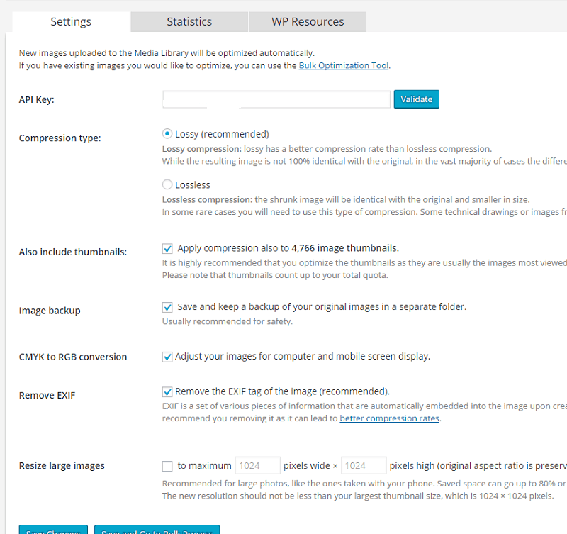 The bulk image optimization option is great, as it allows you to compress and resize all your blog pictures at once.