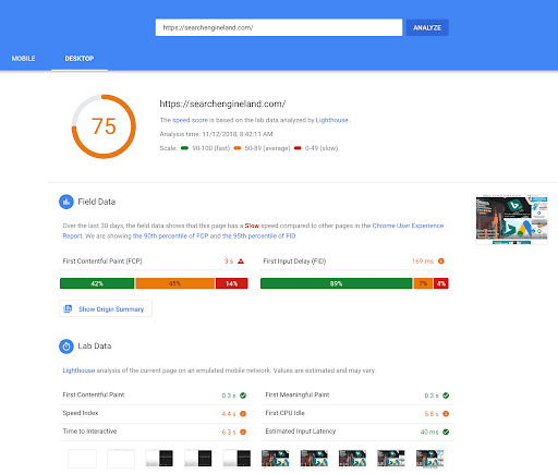 Google PageSpeed Insights measures the performance of a page for both mobile and desktop devices and gives you a detailed report on what factor is slowing your site’s loading time.