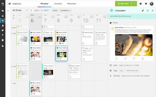 The tool enables you to schedule and manages your social media profiles for more than 30 platforms. It allows you to schedule posts on a 24/7 cycle, helping you expand your reach to international audiences.