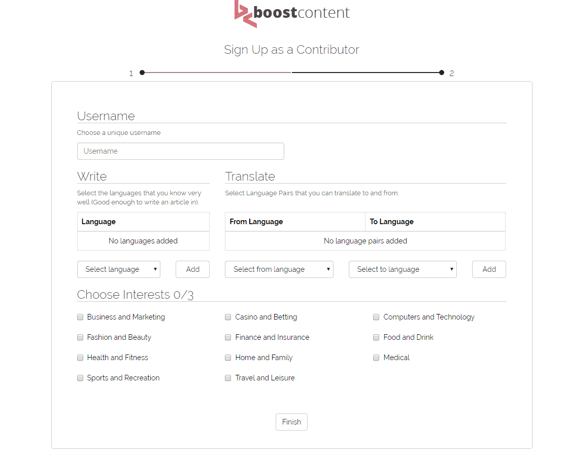Sign Up To BoostContent as Contributor