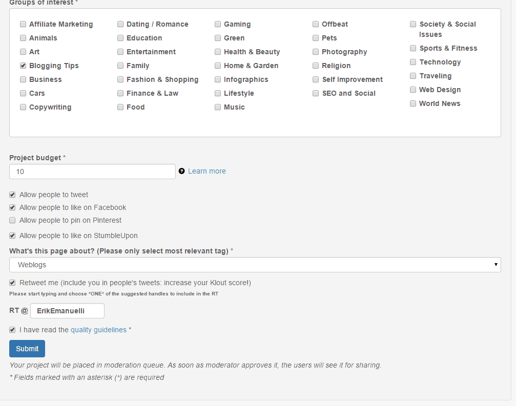 You are now ready to click the “submit” button, to get your project placed in moderation queue.