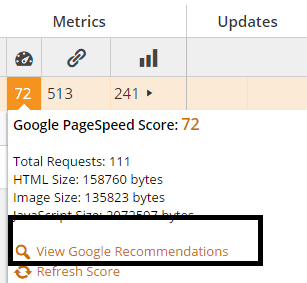 You can discover your site Google PageSpeed score, checking the total requests and viewing the recommendations to improve it.