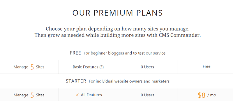 You can enjoy all the premium features, with just $8/mo for up to 5 sites or $12/mo with up to 10 sites.