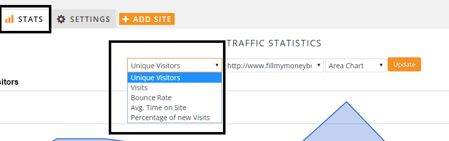 The stats tab gives, at glance, a graphic with unique visitors, bounce rate, average time on site, percentage of new visits: