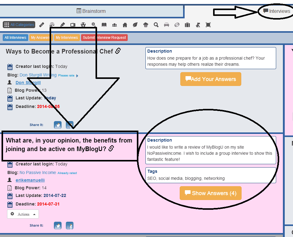 You want to browse among the several interviews from other users, answer the questions, sharing your knowledge and receiving a credit when published on their site!