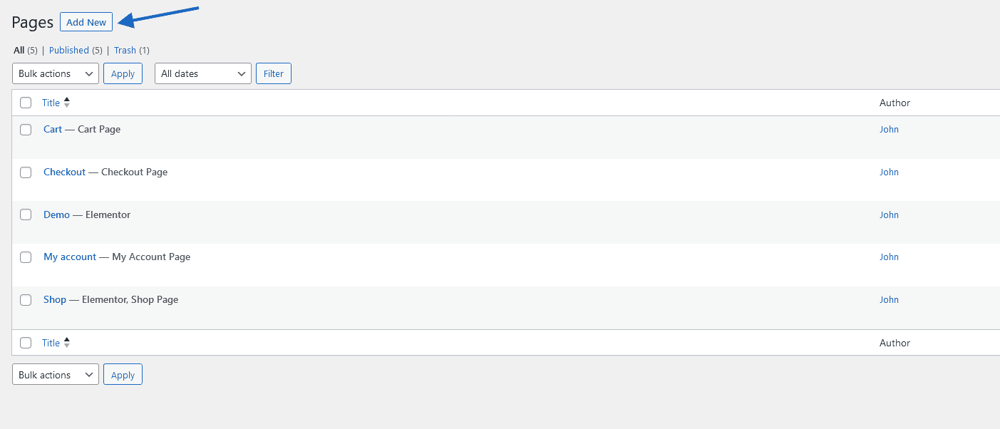 - Now you have to create a new page. Click on the Add New button on the site page and provide a title to your new page.