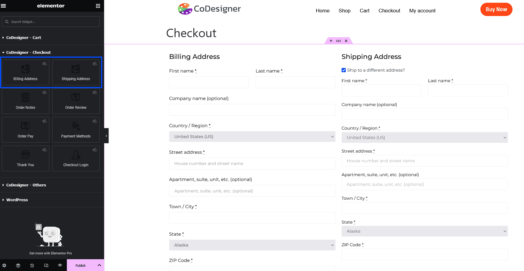 CoDesigner is one of the top Elementor add-ons. It helps you create and customize every part of WooCommerce including the Shop page, Cart page, Checkout page, and Single Product page. This plugin offers both free and Pro versions. Both of these versions provide highly customizable widgets and pre-made templates.