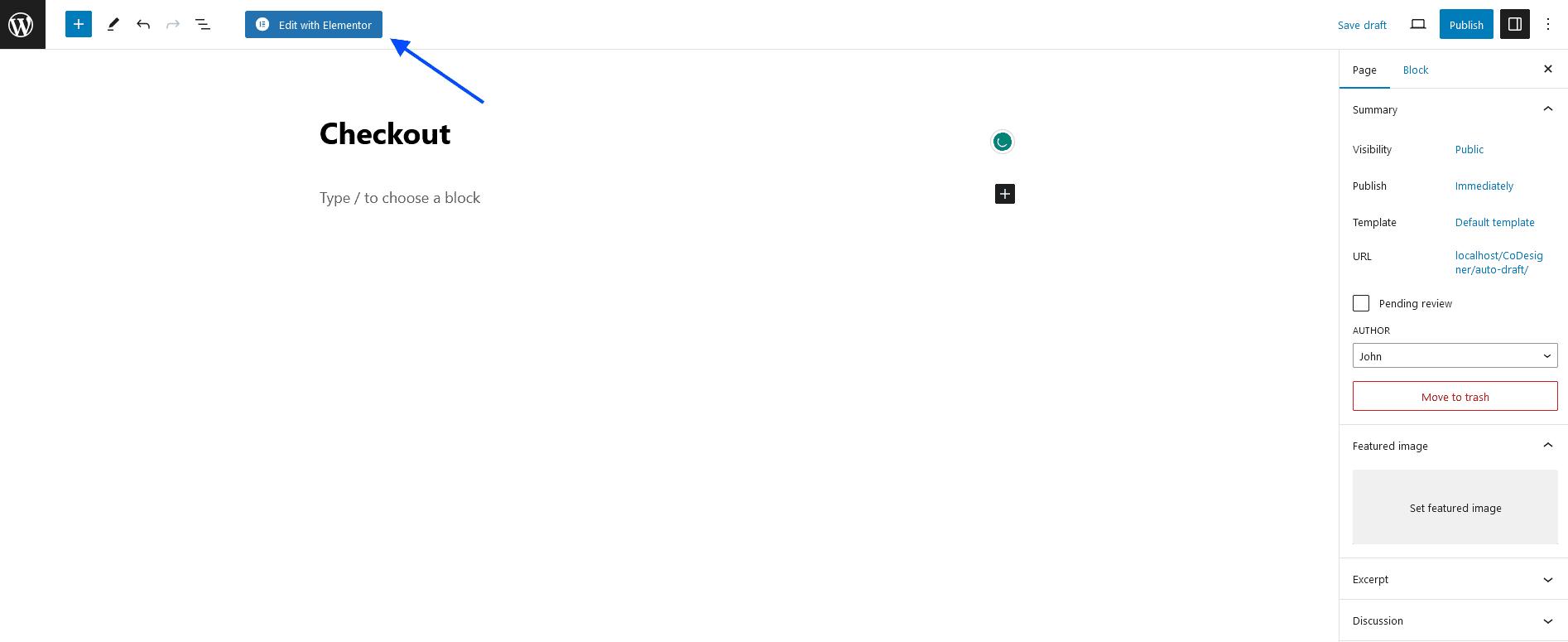 - On the editor page, You have to use the CoDesigner Checkout widgets on a new section