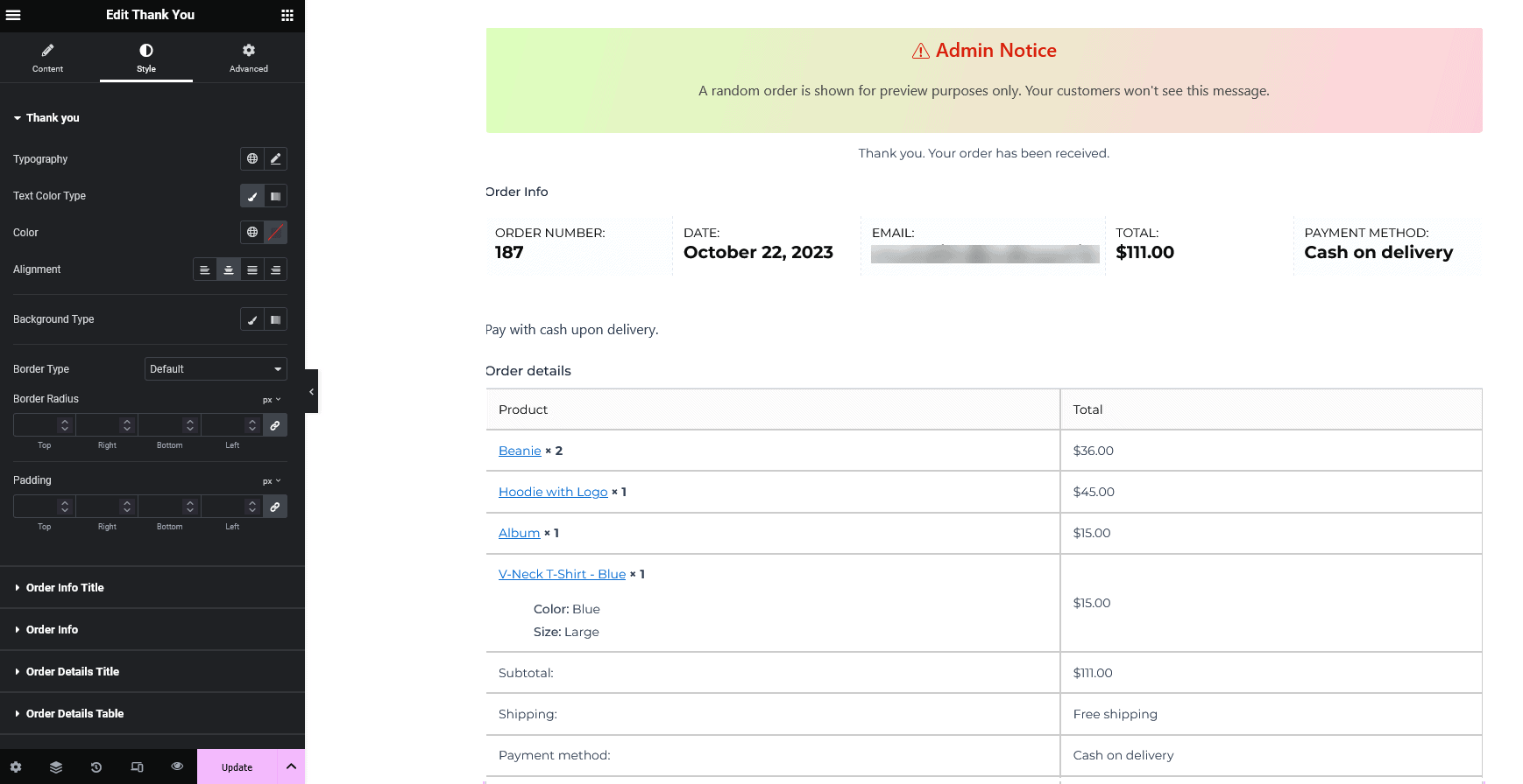- When the customization is completed, click on the section and enable Contains ThankYou