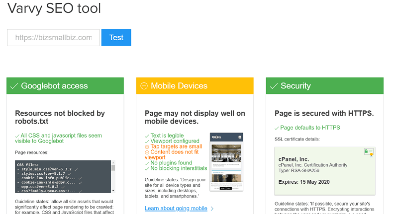 In the report, you will see if your site is following Google’s search engine optimization’s guidelines. If you’re new to search engine optimization, Varvy can help you get off to a great start.