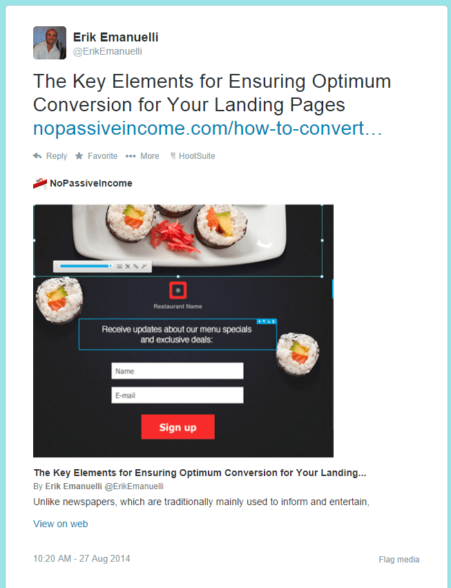 Here below you see an image of one of my latest posts, after the integration of Twitter Cards.